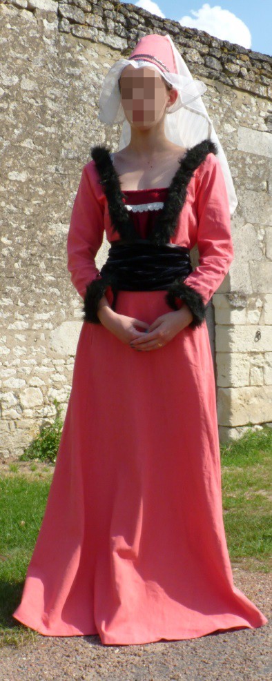 Robe en drap teinté rouge clair, à tassel velours rouge carmin